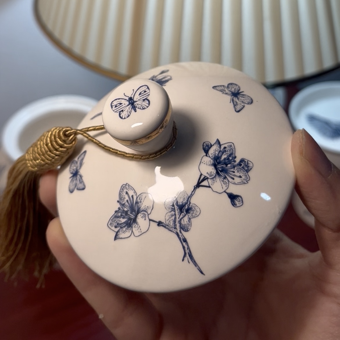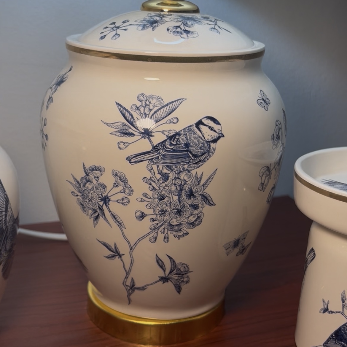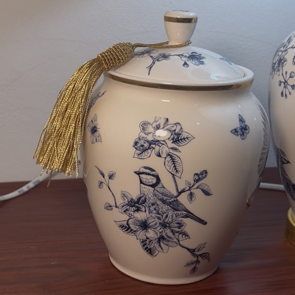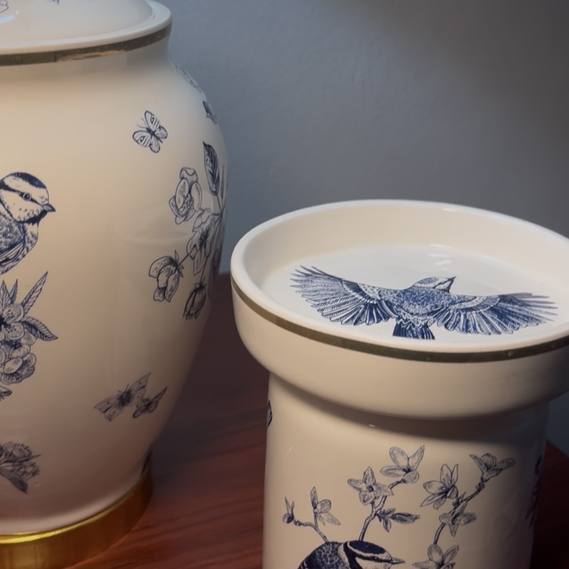 ست آباژور و گلدان و هدیه یک جاشمعی رومیزی سرامیکی پرنده آبی