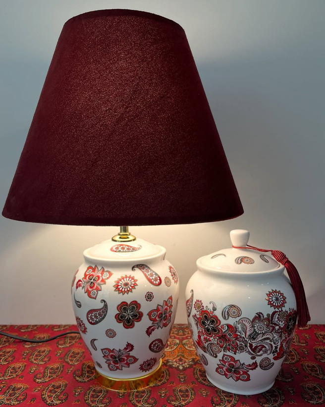 آباژور طرح بته جقه سنتی قرمز به همراه جینجر جار ست به صورت جدا نیز به فروش میرسد. هماهنگ شود. مشخصات محصول جنس: سرامیک طرح: 360 ارتفاع:45 قطر شید:30 جار: 25